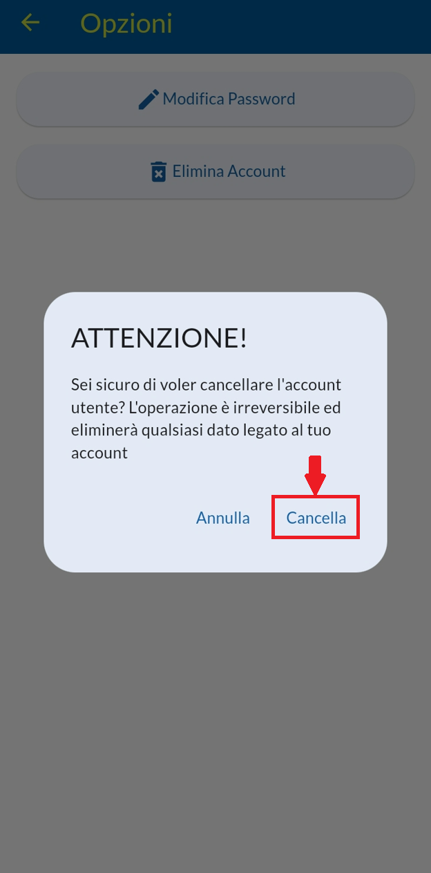 Conferma l'eliminazione definitiva del tuo account e di tutti i dati ad esso collegati (preferenze, articoli letti, prenotazioni ecc.)